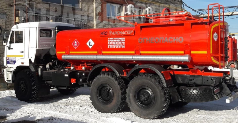 Автоцистерна АЦн-15 на шасси КамАЗ 43118 с колесной формулой 6х6 оснащена двигателем Cummins ISL мощностью 340 л.с. Грузоподъемность шасси составляет 13 тонн. Вместимость цистерны не менее 15 м3.