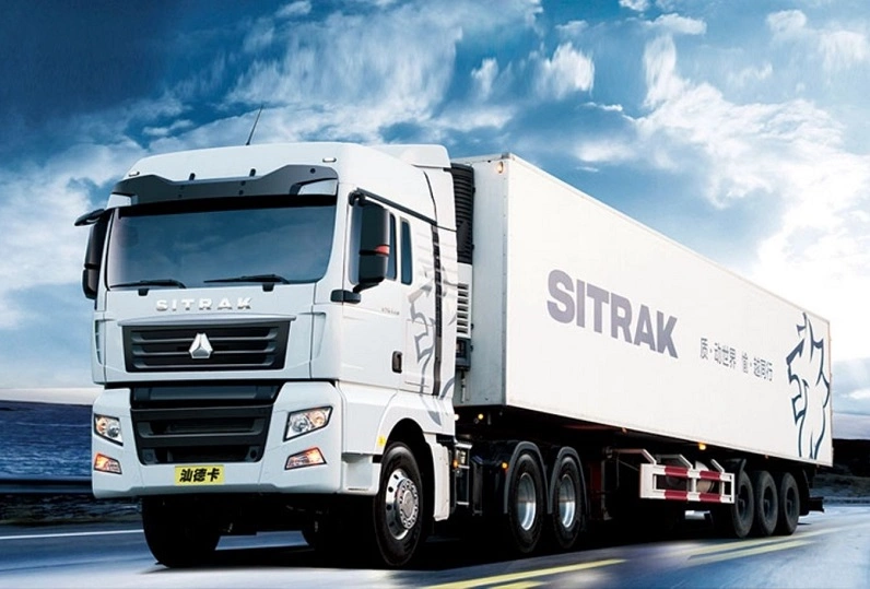 Седельный тягач SITRAK C7H с колесной формулой 6x4 оснащен двигателем MC13.54-50 мощностью 540 л.с. и способен перевозить грузы массой до 25 тонн. Тягач предназначен для эксплуатации в составе автопоезда совместно с полуприцепом по всем типам дорог.